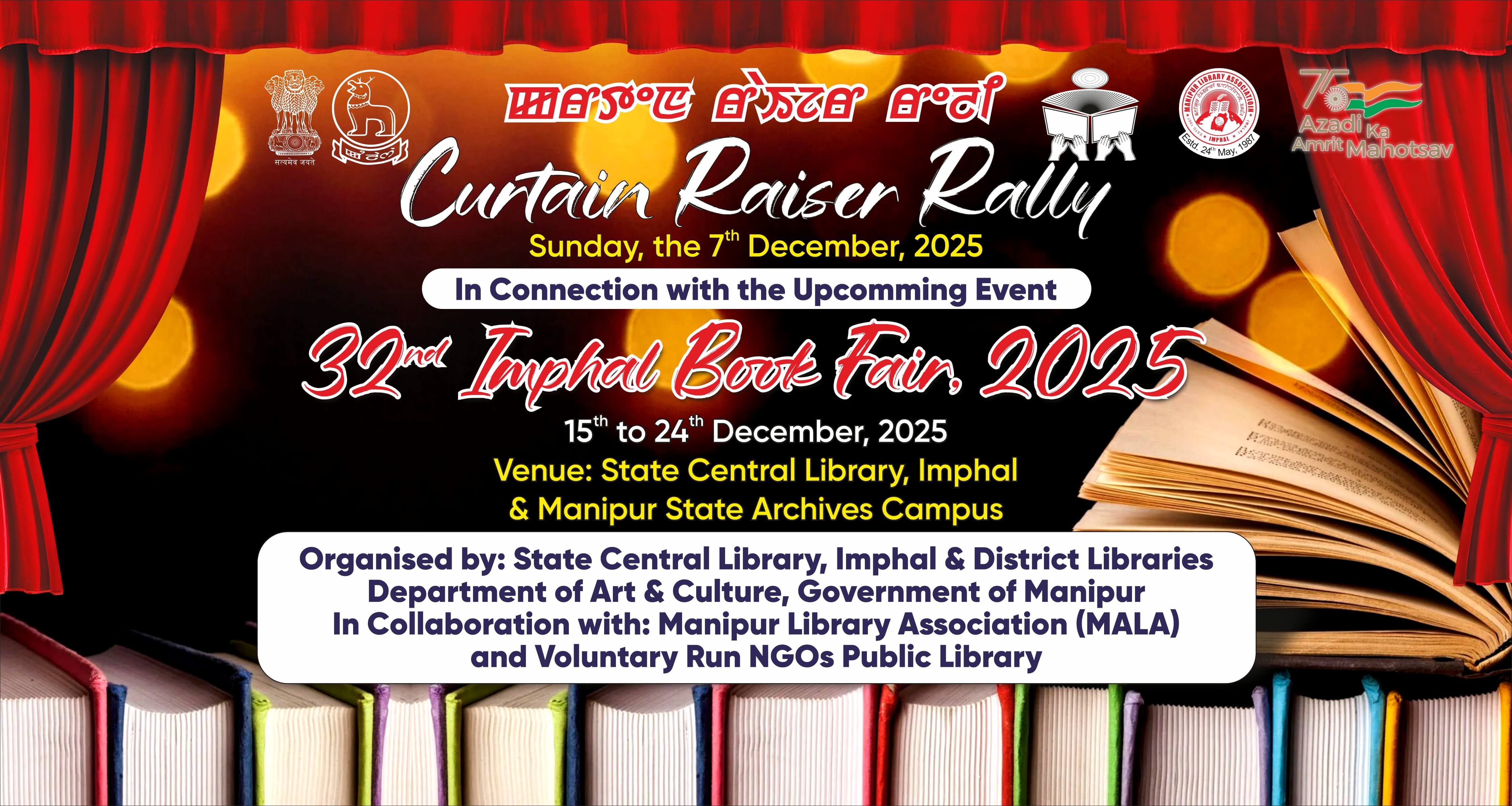 Home Schemes & Rules Special Library Book Donation Form Library Directory Guidelines on National Mission on Libraries e-Granthalaya scl2Copy of Add a subheadingCopy of Untitled Designscl2 Latest News & Updates Notice inviting Book Firms or Agencies for the participation of “32nd Imphal Book Fair, 2025″. IMPHAL BOOK FAIR, 2025 31st EDITON OF IMPHAL BOOK FAIR BEGINS AT STATE CENTRAL LIBRARY Route Maps Image #1 INAUGURATION OF NEW COMPUTER LAB OF STATE CENTRAL LIBRARY IMPHAL 31st EDITON OF IMPHAL BOOK FAIR BEGINS AT STATE CENTRAL LIBRARY Convener Details Library Legislation Event / Webinars AR 2022-23 Survey Report Edition 11 Preamble Download Various Programs & Functions Library Day ObservanceImphal Book FairLibrary ExhibitionImphal Book Fair